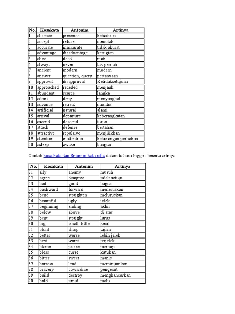 50 Kata Sinonim Dan Antonim Dalam Bahasa Inggris Lengkap Dengan Artinya Diadona Id